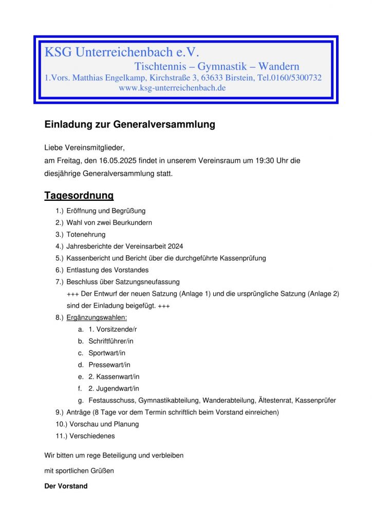 Spielersitzung am Mittwoch, dem 28.5.25 um 19:30 Uhr