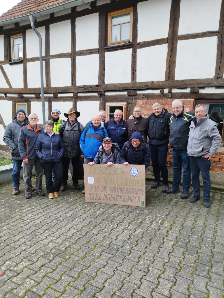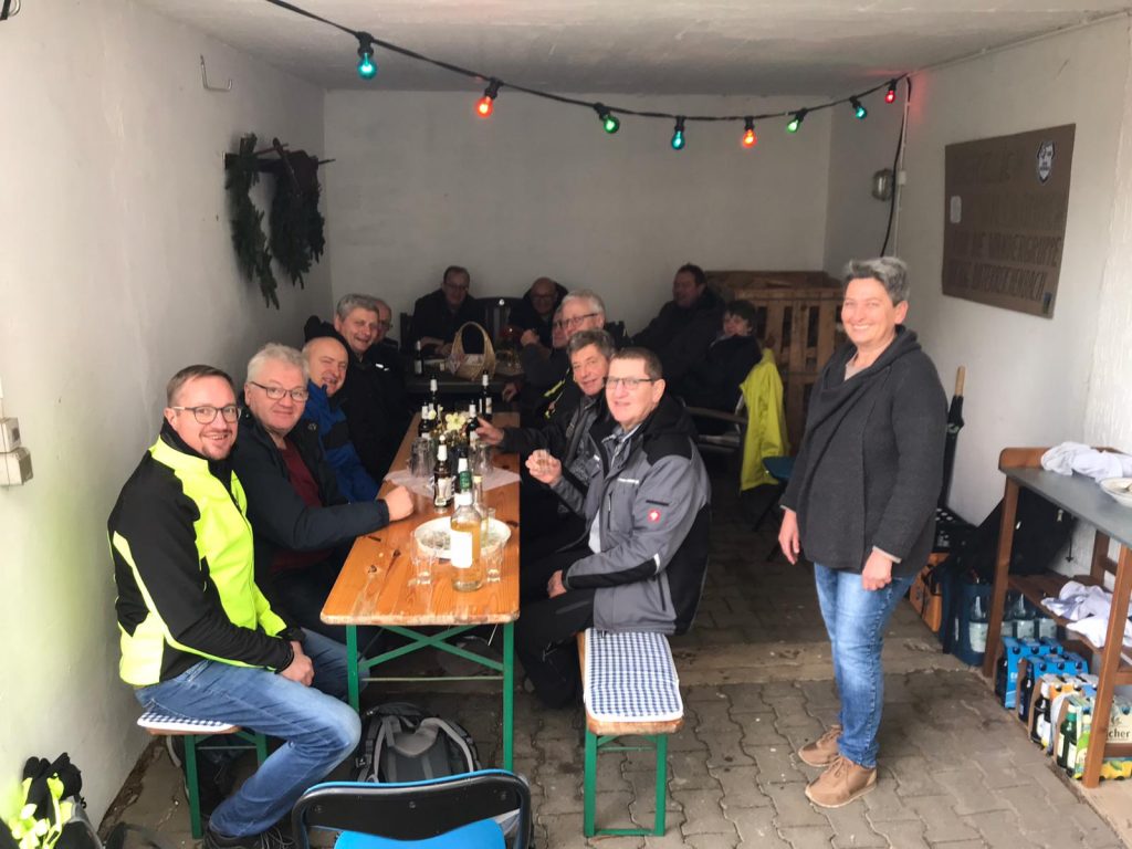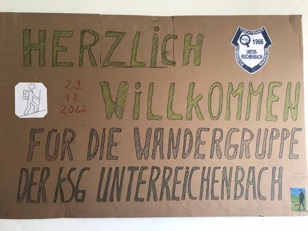 Am 29.12.22 um 10 Uhr trafen sich zwölf wackere männliche Wanderer und eine Frau am DGH in URB, um nach Mauswinkel zu wandern. Bei trockenem aber windigem Wetter ging es über Feld und Flur ging es zunächst nach Fischborn, wo wir bei unserem Mitglied Edgar Schauermann einen Zwischenstopp einlegten. Danach ging es weiter nach Mauswinkel zu unserem Mitglied Martin Radtke, der mit seiner Frau Danica etwas Gutes zu Essen und Trinken vorbereitet hatte. Wir wurden mit einem eigens angefertigten Begrüßungsschild empfangen. Es gab zum Aufwärmen einen Glühwein und dann leckeres Chili con Carne mit Brot; dazu kühle Getränke und zum Verdauen entweder einen Slivovitz oder einen Quittenschnaps. Hiermit bedanken wir uns recht herzlich bei unseren Gastgebern Danica und Martin Radtke für die sehr gute Bewirtung! Nach ein paar lustigen Stunden ging es auf Schusters Rappen wieder heimwärts nach URB. Dies war eine gelungene Wanderung zum diesjährigen Jahresabschluss!