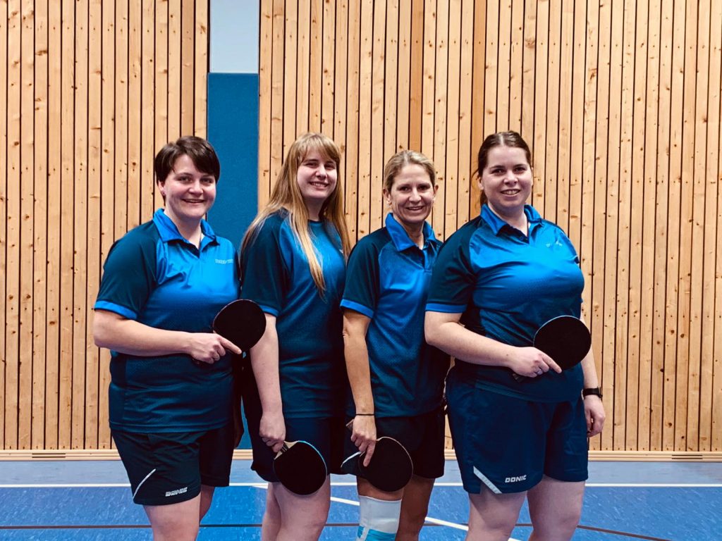 Foto unserer 1. Damenmannschaft, die in der vergangenen TT-Saison 2023/2024 in dieser Aufstellung in der Bezirksoberliga spielte